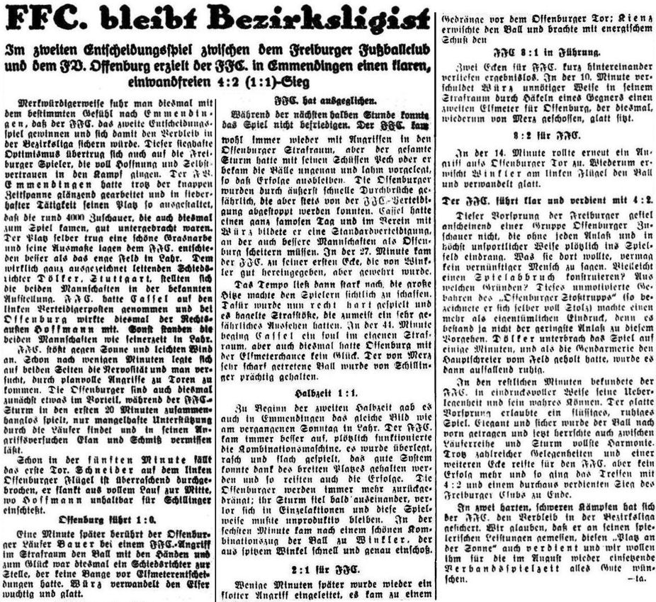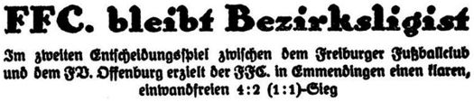 | 18.06.1933 | FC Emmendingen - Freiburger FC | 0-4 |