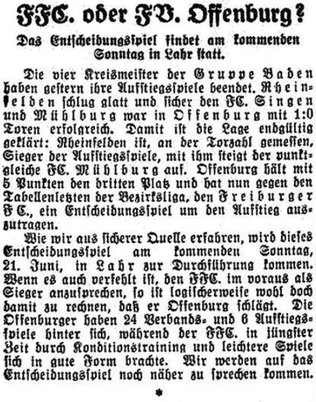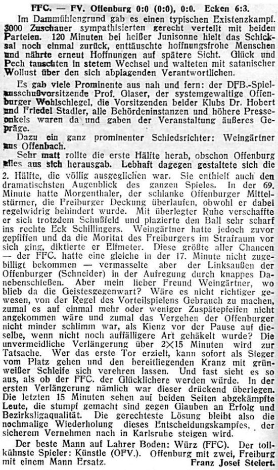 | 21.06.1931 | Freiburger FC - Offenburger FV 0-0 n. V. | (Austragungsort: Lahr) | Vorbericht; Spielbericht 1; |