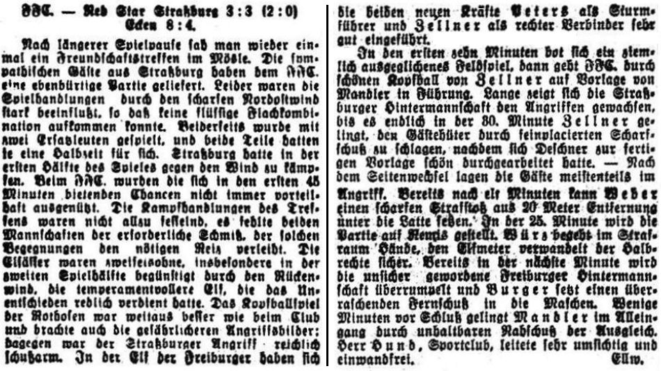 | 29.03.1931 | Freiburger FC - Red-Star Straßburg (F) | 3-3 | Spielbericht |