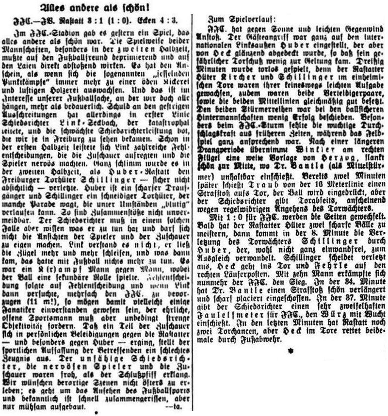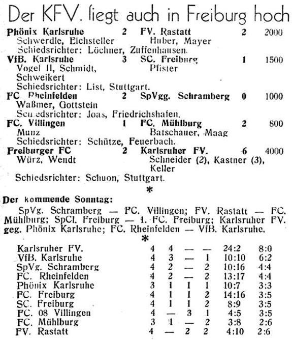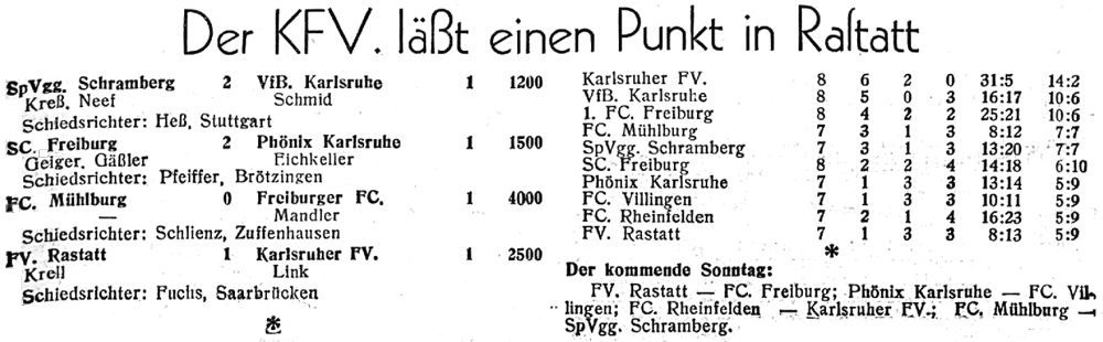 | 09. Spieltag | 04.10.1931 | FV Rastatt - Freiburger FC | 4-1 | Spielbericht; Statistik |
