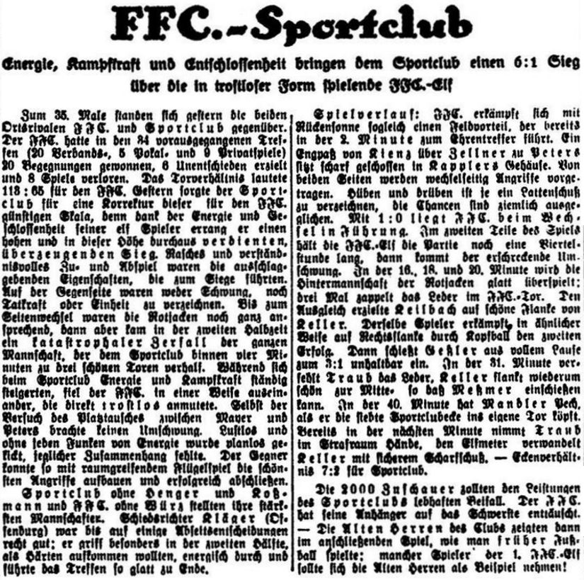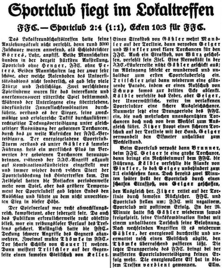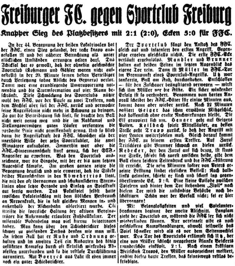 | 07.06.1931 | SC Freiburg - Freiburger FC | 1-6 | Spielbericht Teil 1; Spielbericht Teil 2 |