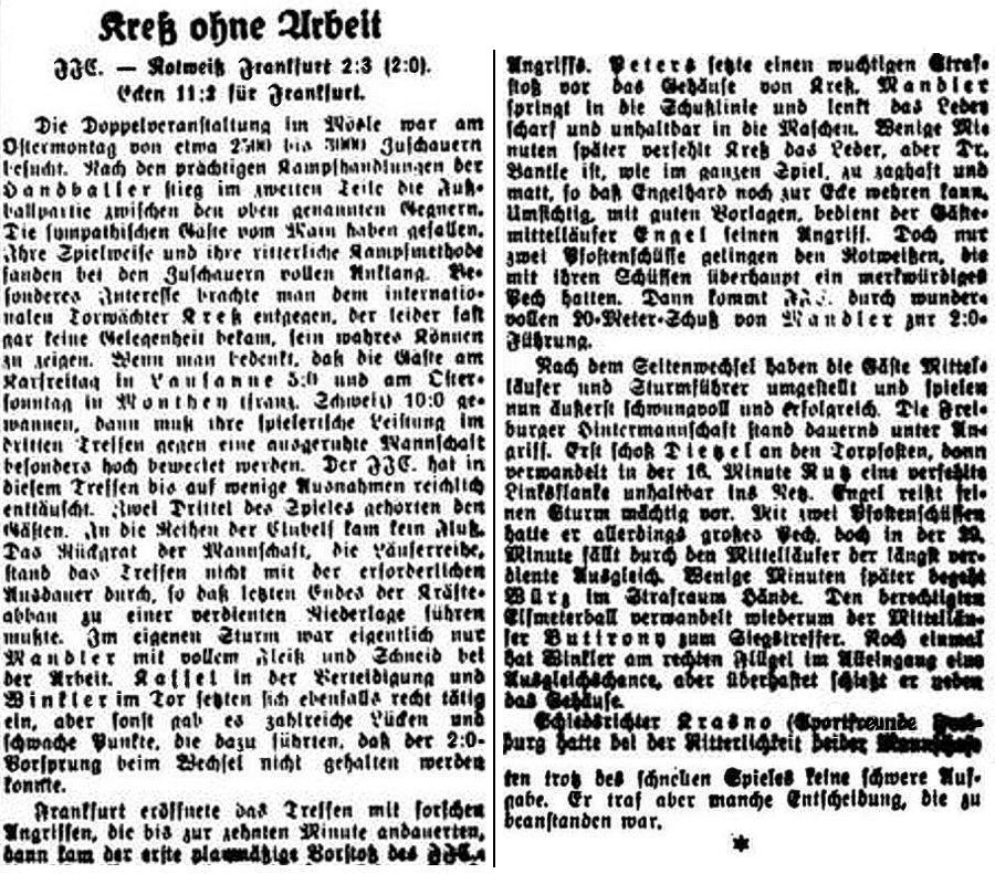 | 06.04.1931 | Freiburger FC - Rot-Weiß Frankfurt | 2-3 | Spielbericht |
