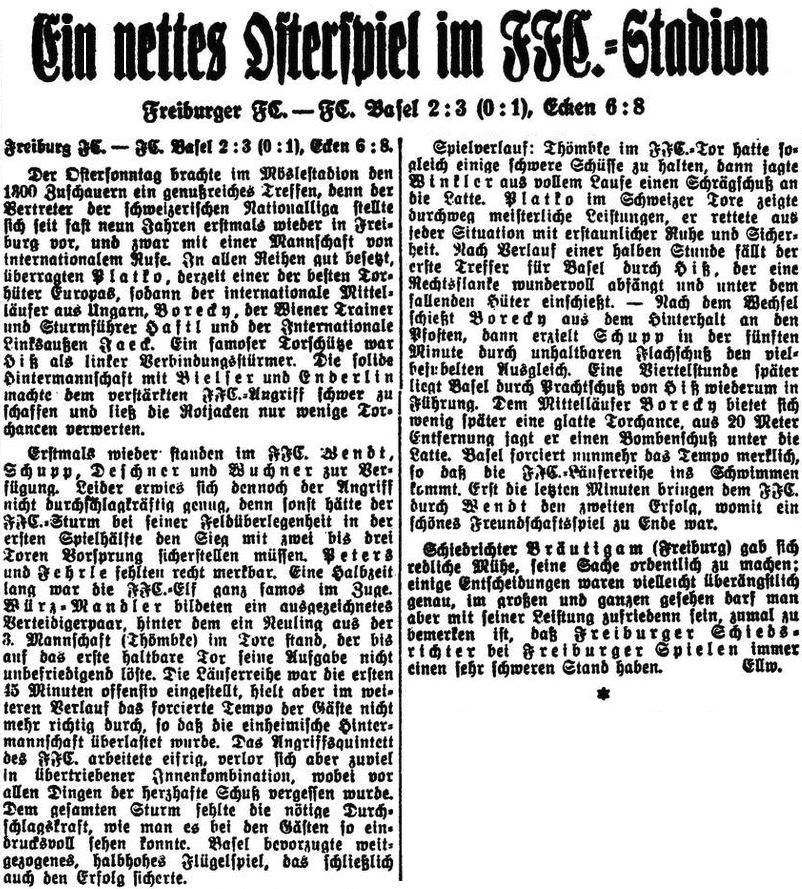 | 27.03.1932 | Freiburger FC - FC Basel (CH) | 2-3 | Spielbericht |