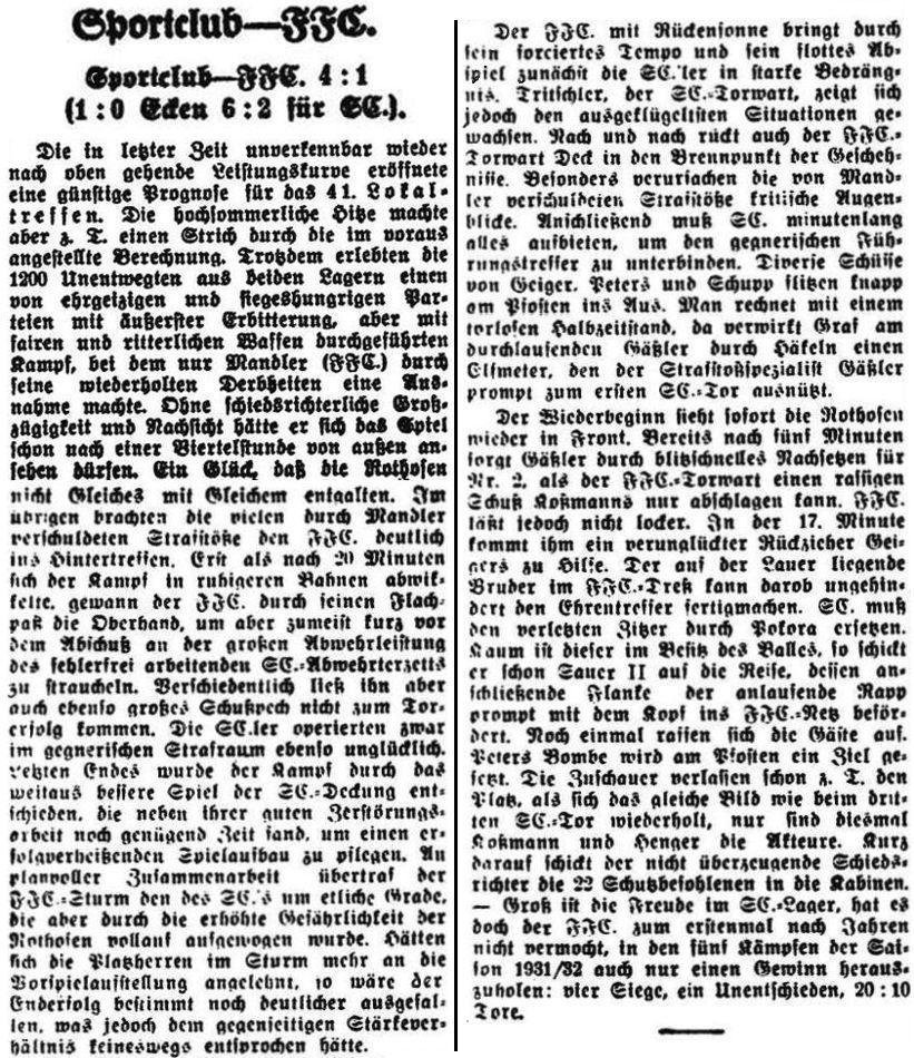 | 29.05.1932 | Freiburger FC - SC Freiburg | 2-4 | (im Universitätsstadion); Spielbericht |