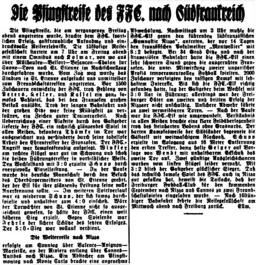 | 16.05.1932 | Olympique Nizza (F) - Freiburger FC | 3-2 | Spiel- und Reisebericht |