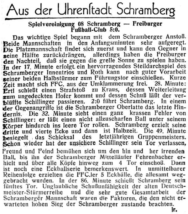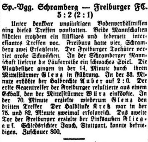 | 05. Spieltag | 04.09.1932 | Freiburger FC - Spvgg. Schramberg | 6-1 | Spielbericht 1; Spielbericht 2 |