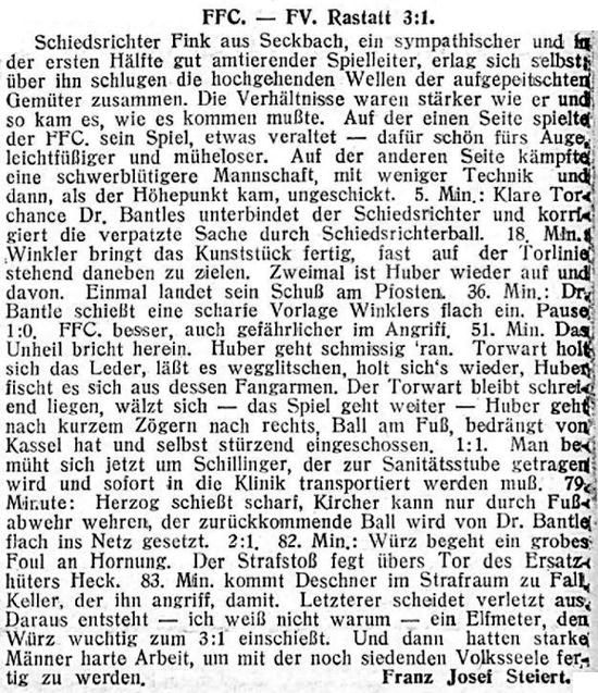 | 18. Spieltag | 11.12.1932 | Freiburger FC - FV Rastatt | 4-0 | Spielbericht |