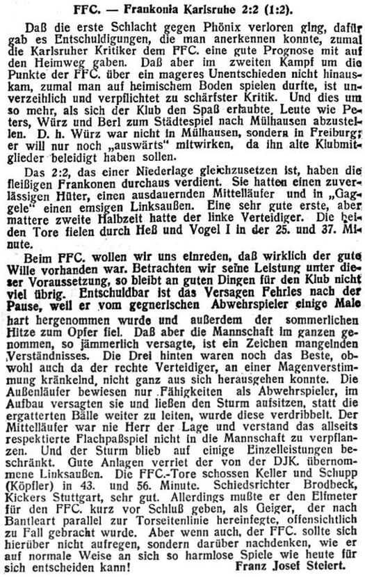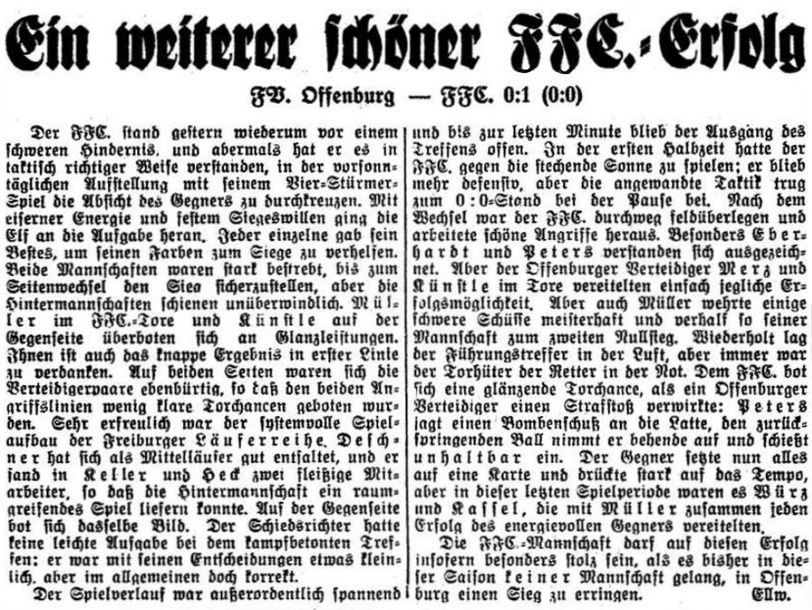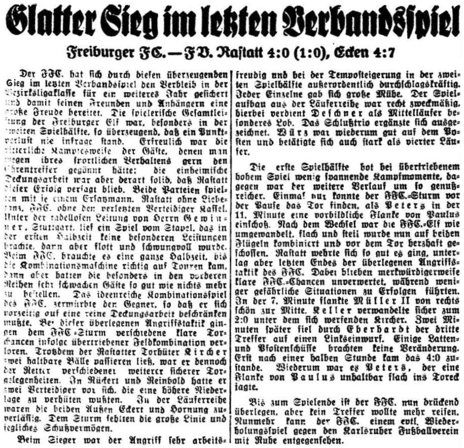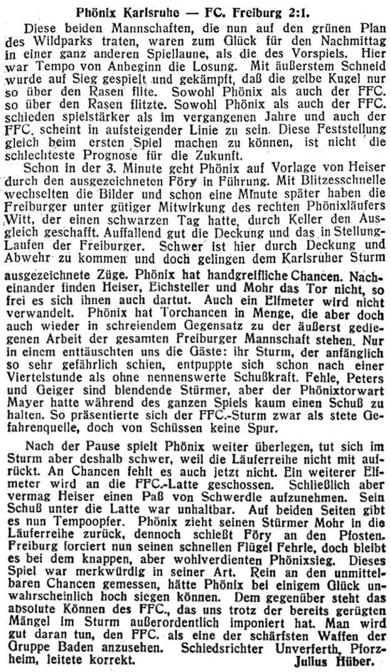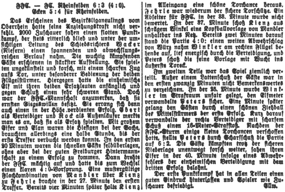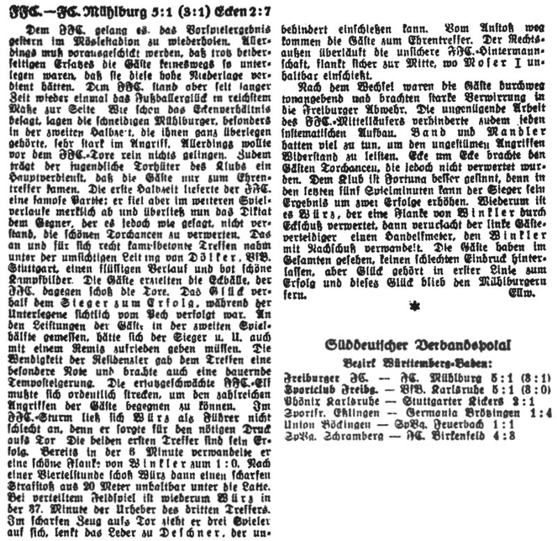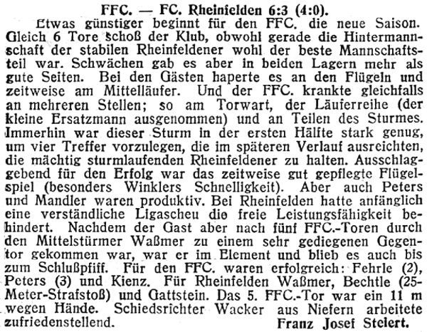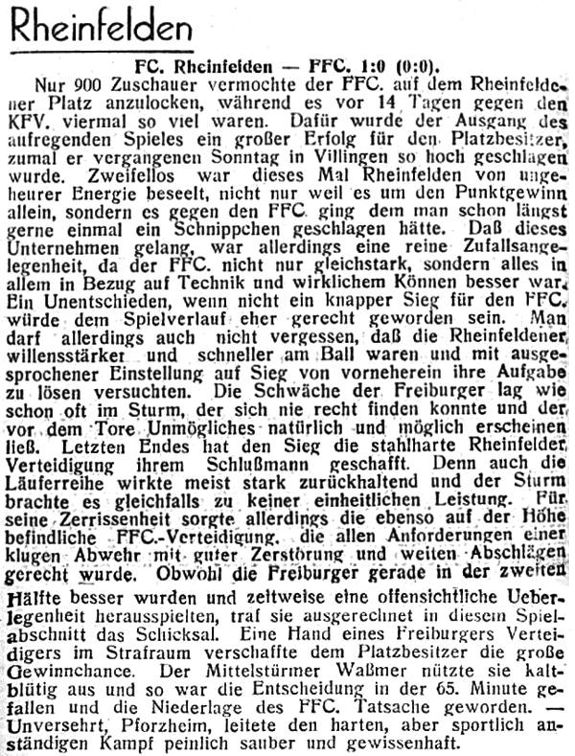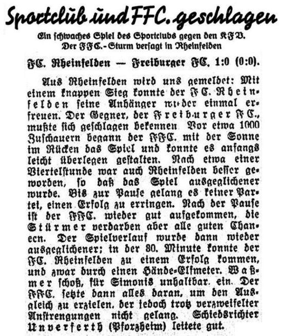 09.08.1931 | Freiburger FC - FC Rheinfelden | 6-3 | Spielbericht 1; Spielbericht 2 |