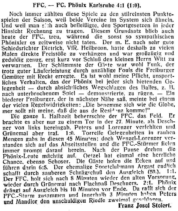 | 24.01.1932 | FC Phönix Karlsruhe - Freiburger FC | 3-3 | Spielbericht |