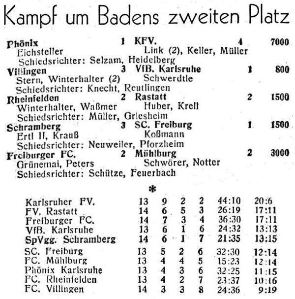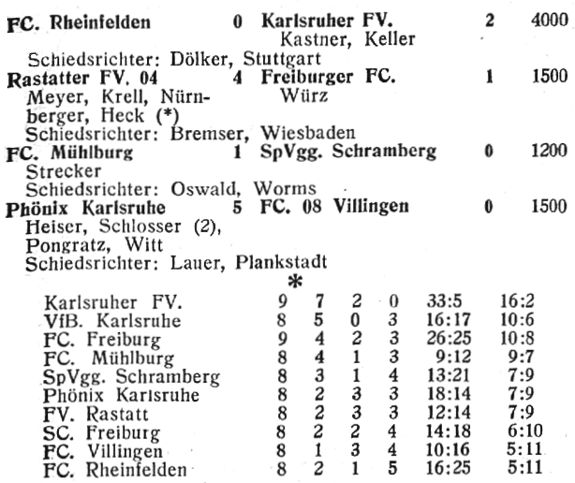 | 16. Spieltag | 06.12.1931 | Freiburger FC - FV Rastatt | 3-0 | Spielbericht 1; Spielbericht 2; Statistik |