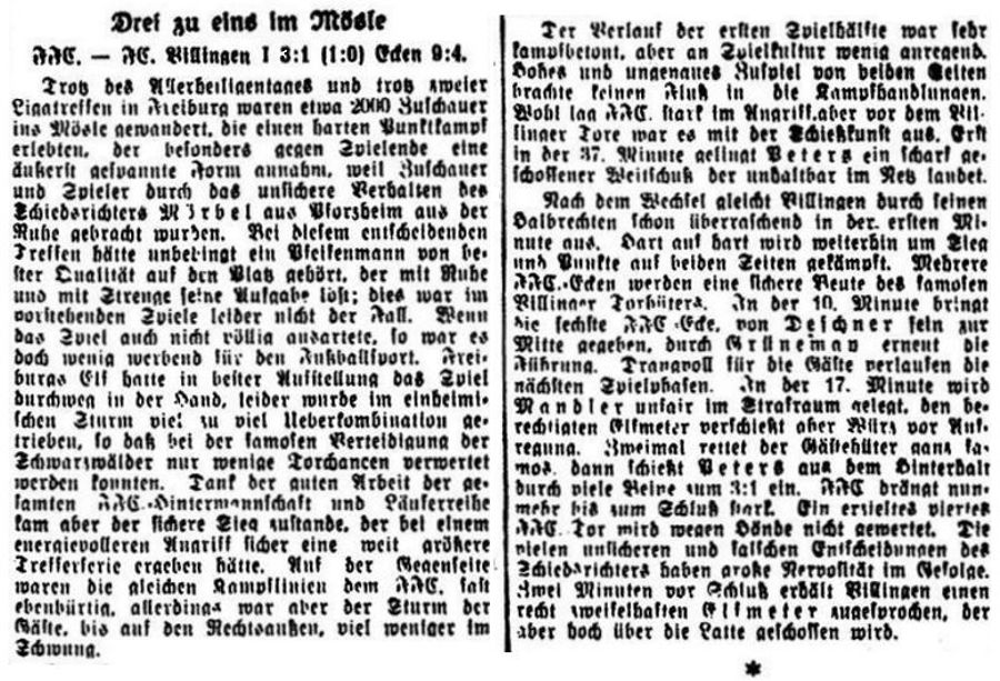 | 09. Spieltag | 02.11.1930 | Freiburger FC - FC Villingen | 1-2 | Spielbericht 1; Spielbericht 2 |