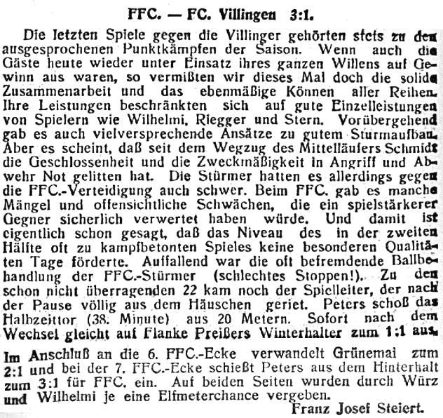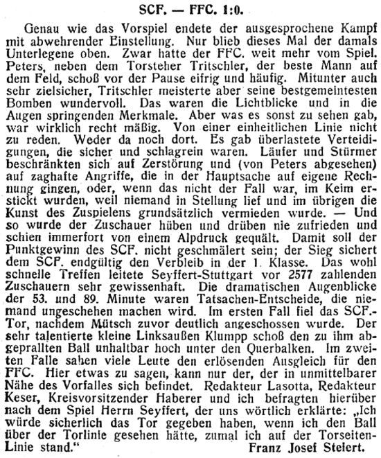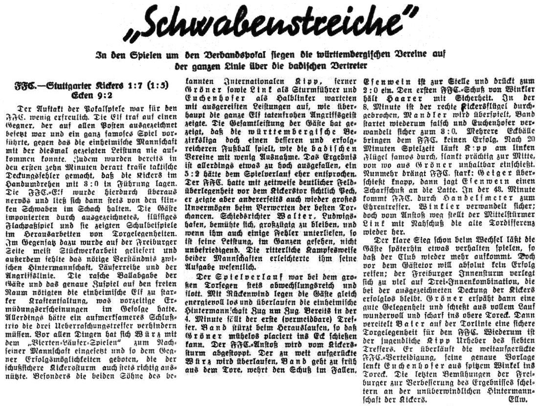 | 15.01.1933 | Freiburger FC - VfB Stuttgart | 1-4 | Spielbericht Teil 1; Spielbericht Teil 2; Nachbericht |