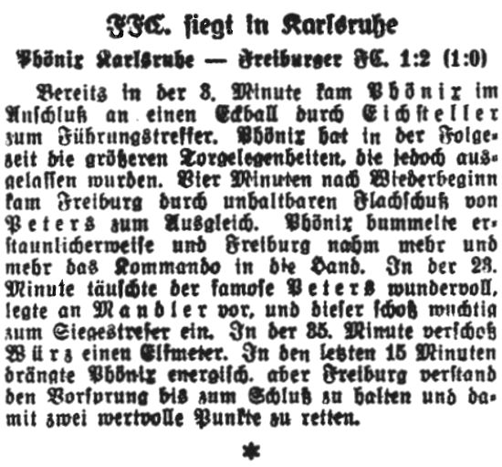 | 13. Spieltag | 14.12.1930 | Freiburger FC - FC Phönix Karlsruhe | 3-0 | Spielbericht |