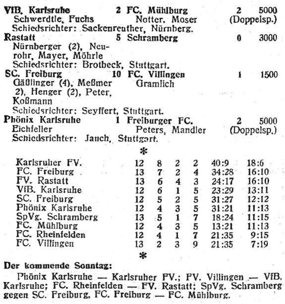 | 11. Spieltag | 25.10.1931 | Freiburger FC - Spvgg. Schramberg | 3-0 | Spielbericht 1; Spielbericht 2; Statistik |