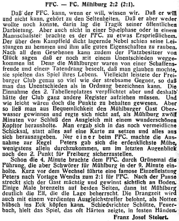 | 14. Spieltag | 15.11.1931 | Freiburger FC - FC Mühlburg | 2-2 | Spielbericht; Statistik |