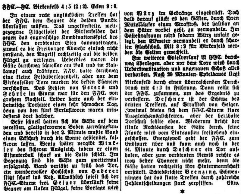 | 14.02.1932 | Freiburger FC - FC Birkenfeld | 4-5 | Spielbericht |