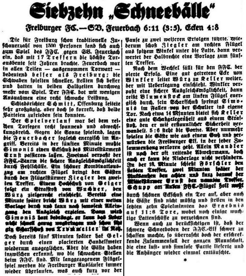 | 13.03.1932 | Freiburger FC - Spvgg. Feuerbach | 6-11 | Spielbericht |