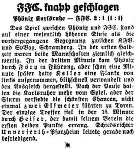 | 04. Spieltag | 21.09.1930 | FC Phönix Karlsruhe - Freiburger FC | 3-2 | Spielbericht 1; Spielbericht 2 |