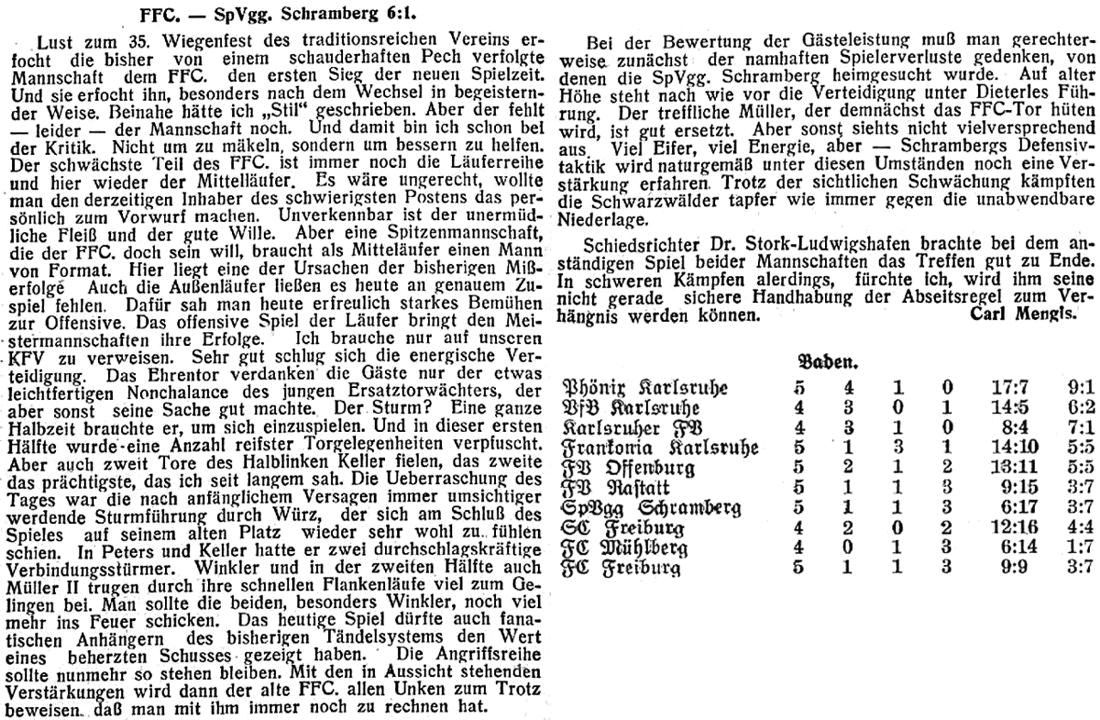 | 10. Spieltag | 09.11.1930 | Spvgg. Schramberg - Freiburger FC | 5-0 | Spielbericht 1; Spielbericht 2 |