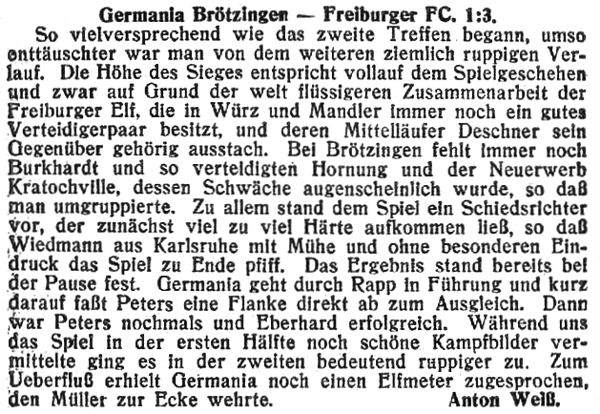 | 28.03.1932 | Germania Brötzingen - Freiburger FC | 4-4 | Statistik |