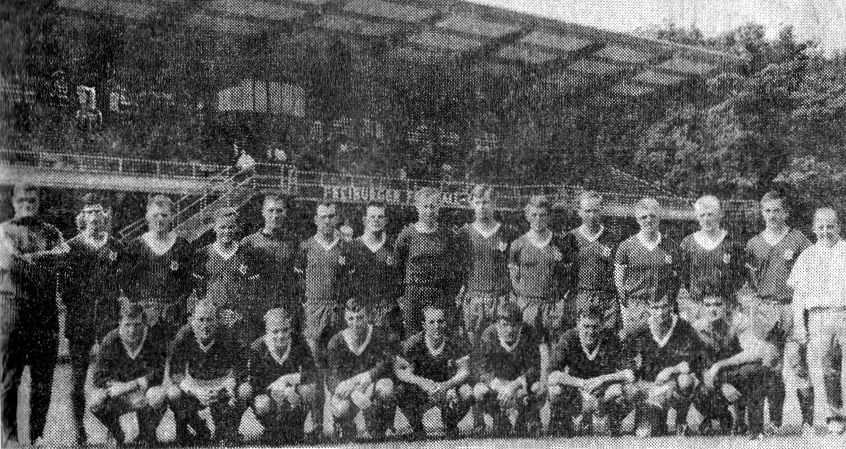 Neuzugänge, von links: Trainer Fred Hoffmann, Jürgen Billmann, Hans-Günter von de Fenn, Werner Anzill, Bernd Zimmer, Jürgen Gensheimer, Günter Streich, Bernd Schneider, Gert Fröhlich.