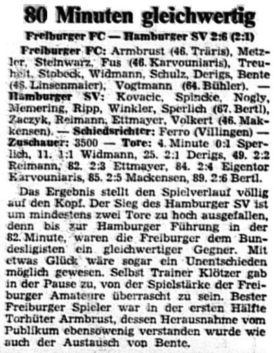 | 20.05.1976 | Freiburger FC - Hamburger SV 2:6 | Kurzbericht; Spielbericht |