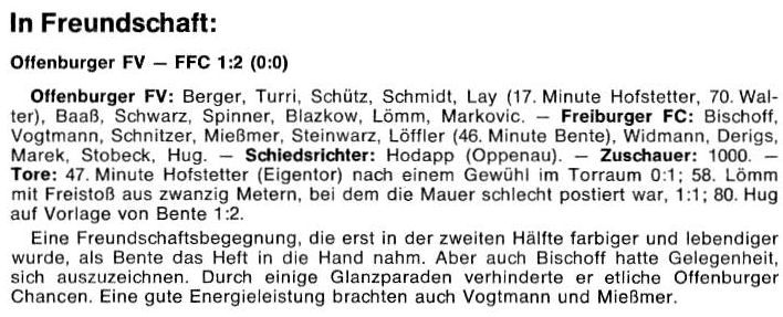 | 28.07.1977 | FC Emmendingen - Freiburger FC 1-6 | Kurzbericht mit Statistik | |